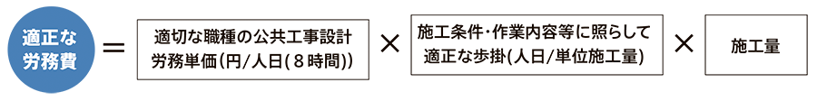 このためには、適正な労務費として、作業に対応する職種の公共工事設計労務単価を計算の基礎とした水準の賃金原資が確保される必要がある。