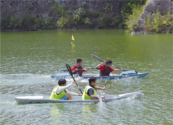 2019年8月24・25日の2日間、大阪城東外堀で開催されたコンクリートカヌー競技大会。「大阪城東外堀は、以前にトライアスロンのスイムが開催された実績はありましたが、コンクリートカヌーなんてできるのだろうかという懸念もありました。そうした中でも関係者の皆さまが前向きに検討してくださり、大阪城という文化財を守りつつ大会を成功することができました」