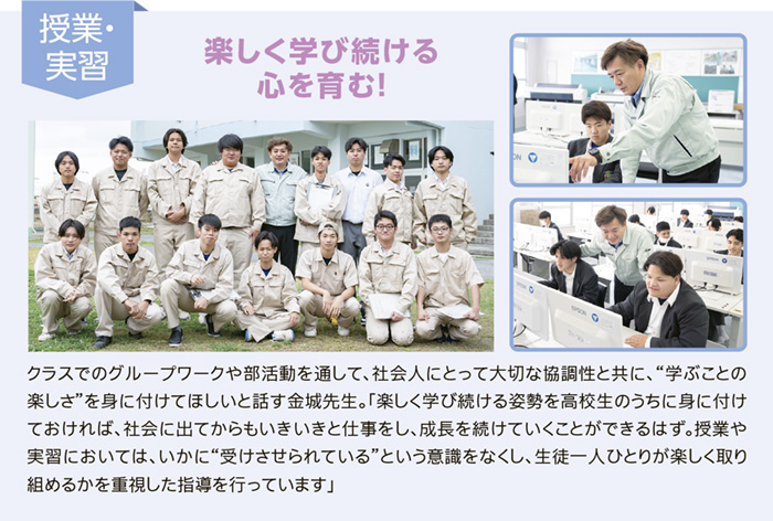 沖縄県の工業高校において最大規模、かつ県内随一の就職者数・就職率を誇る沖縄県立沖縄工業高等学校。“沖工”の愛称で知られる同校では、社会人となるための意識を育む“沖工訓練”や資格取得のサポートをはじめ、中学生・小学生に向けた建設業への関心を高める施策など、様々な取り組みに挑戦しています。情報化やグローバル化の進展など、目まぐるしく変化する社会へと羽ばたく生徒とどのように向き合っているのか、同校の金城秀樹先生にお話を伺いました。