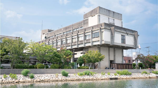 宮津市庁舎 谷川先生が選んだのは、京都府北部を代表する近代モダニズム建築として評価される宮津市庁舎。設計者は建築家・丹下健三氏に師事し、芝浦工業大学大宮図書館などを手がけた京丹後市出身の沖種郎(おきたねお)氏です。「打放しの鉄筋コンクリートの外観が印象的な、地域を代表する建物です。現在は老朽化が進んで使われていない部分もありますが、川沿いに立つ姿も非常に魅力的です」。 |