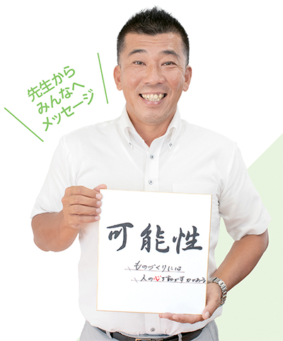 「生徒にはそれぞれに無限の“可能性”が広がっています。ただし、その可能性は、ただ待っているだけではつかめないもの。目標を明確にして、まずは手を伸ばしてみること。その背中を押すことが、私たち教員の役目だと思っています!」。