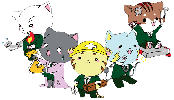 生徒がデザインした白石工業高校の5つの学科を象徴したマスコットキャラクター『テクにゃんこ』