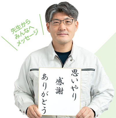 「ものづくりの仕事は、一人ではできないもの。“人”を相手にする仕事だからこそ、関係性の中で悩むこともある。しかし、そうした経験の積み重ねがあるからこそ“人”は生涯成長していける。こどもたちには、相手を思いやり、感謝の言葉として“ありがとう”を素直に伝えることができる“人”になってほしいと願っています」。
