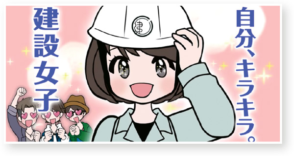 建設業で働く女性をコミカルに描いたアニメ。視聴回数を増やす工夫はアニメキャラを使用