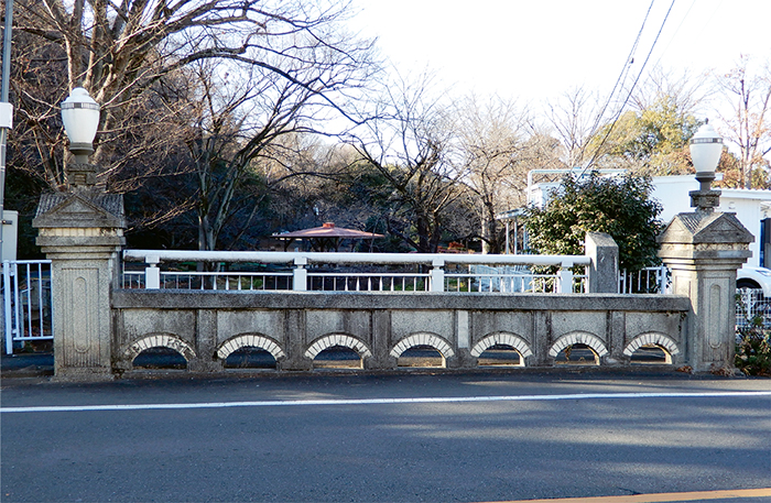 ▲賀美橋の横顔。高欄の小さなアーチが白タイルで縁取られている