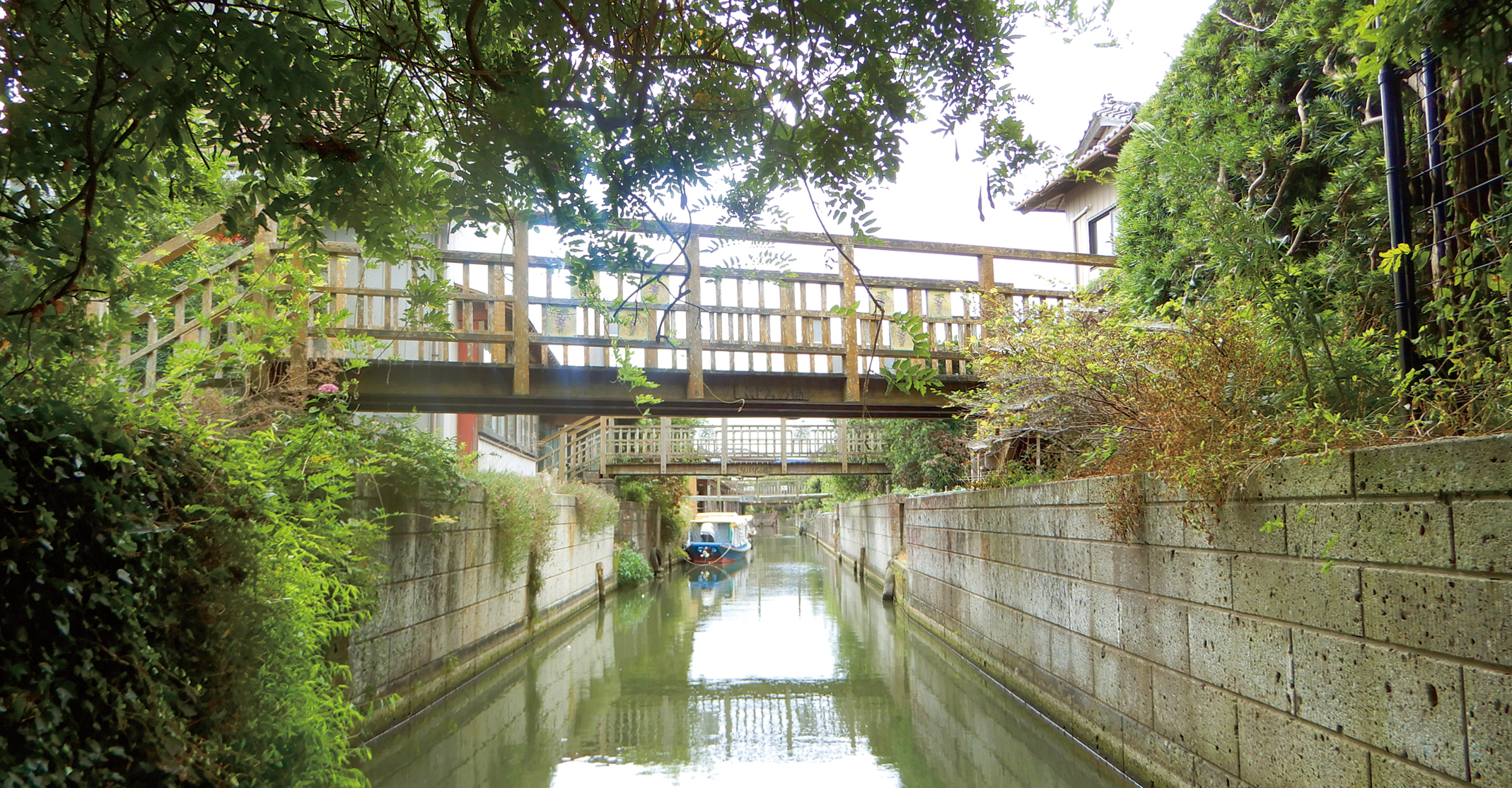 サッパ舟1艘がやっと通れるほどの細い江間と、板を渡しただけの簡素な橋の連なりが、川とともにあった水郷の暮らしと歴史を今に伝えている。
